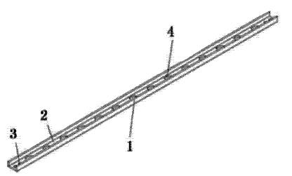 [0005〕木實(shí)用新型提供了一種工具機(jī)工程拖鏈槽,所述工具機(jī)工程拖鏈槽為長(zhǎng)條形的"U”型槽結(jié)構(gòu),包括槽底面,槽底面的兩端分別設(shè)置有安裝孔,所述槽底面上設(shè)置有多個(gè)排屑、排液孔。